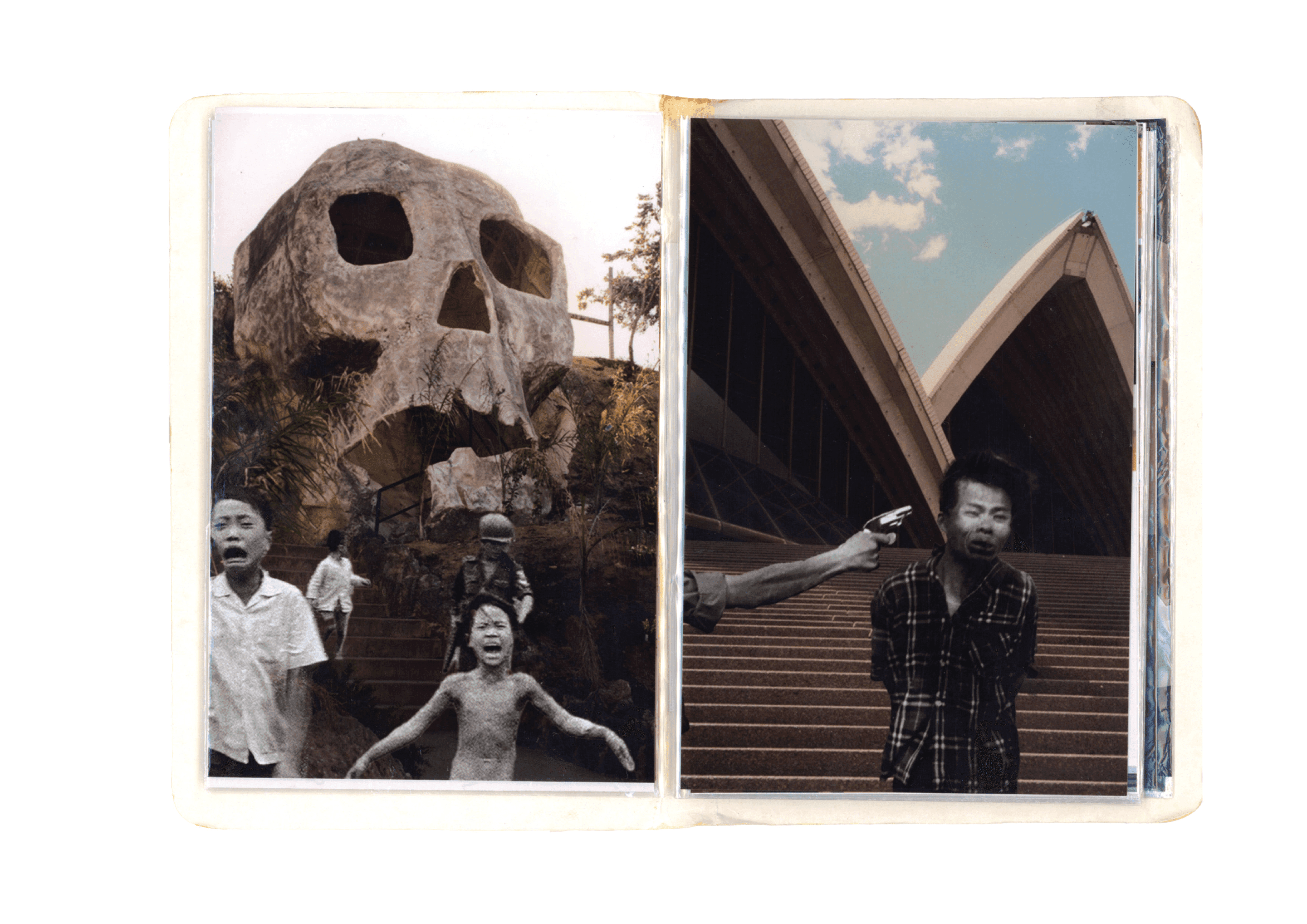 Kodak is a photo album that explores love, resilience, and the cultural contrasts shaped by war and migration. Influenced by Martha Rosler, I juxtapose my parents’ old film photos with stark modern Australian interiors, highlighting the warmth of Vietnamese traditions against Western spaces. Using collage, I weave together moments from the Vietnam War, my parents’ journey, and their life in Australia, illustrating how home is not defined by place but by the people and memories that endure across borders.